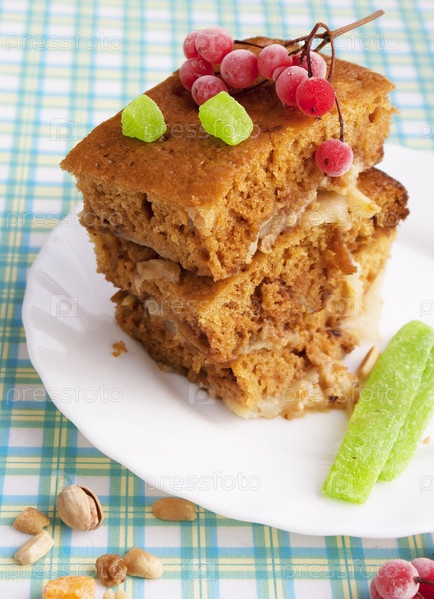 Аппетитный яблочный пирог с ягодами калины и орешками