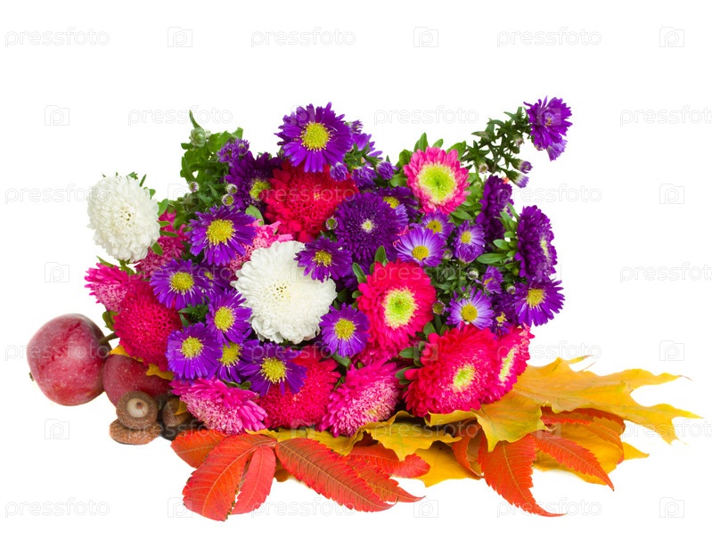 Букет астр и листья