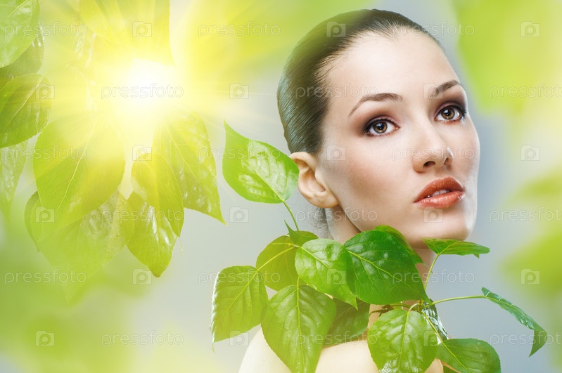Красивая девушки на фоне листьев