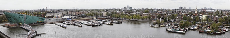 Голландия, Амстердам, панорамный вид города и лодки-дома в гавани