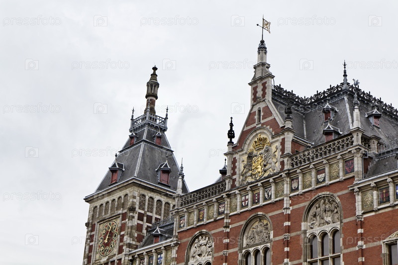 Голландия, Амстердам, фасад центрального железнодорожного вокзала