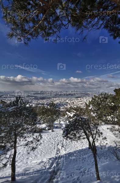 Турция, Стамбул, панорамный вид города, пролив Босфор и Босфорский мост со азиатской стороны
