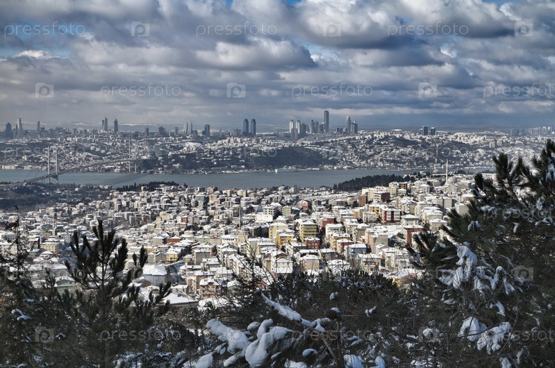 Турция, Стамбул, панорамный вид города, пролив Босфор и Босфорский мост