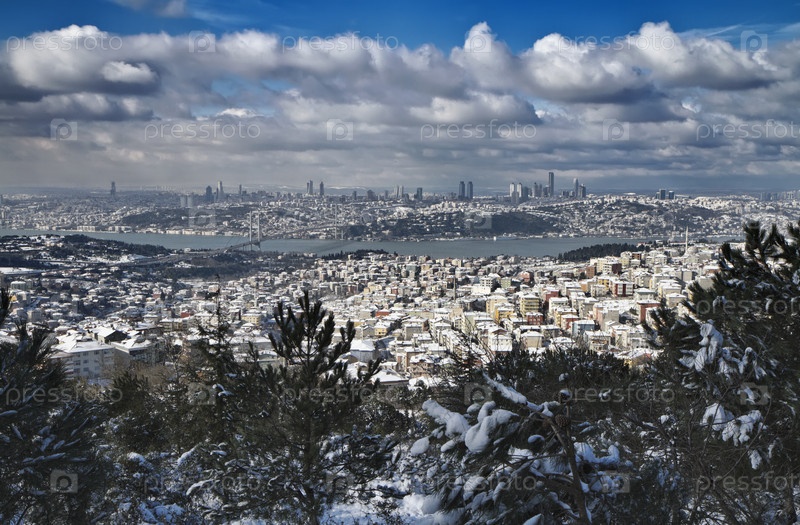 Турция, Стамбул, панорамный вид города, пролив Босфор и Босфорский мост