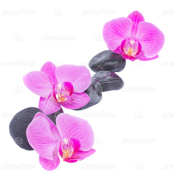 Цветы орхидеи и морские камни на белом фоне