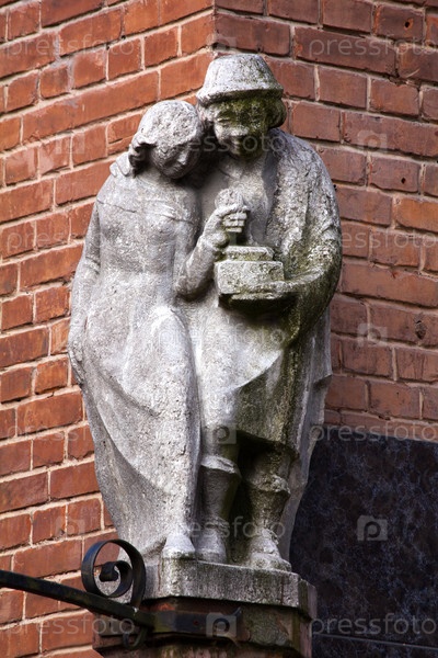 Древний старый барельеф с мужчиной и женщиной на стене