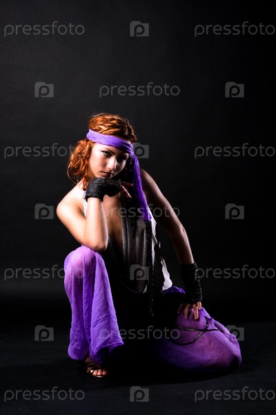 Молодая женщина в студии в темном фоне