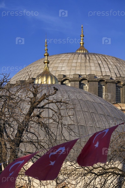 Турция, Стамбул, турецкие флаги и Софийский собор