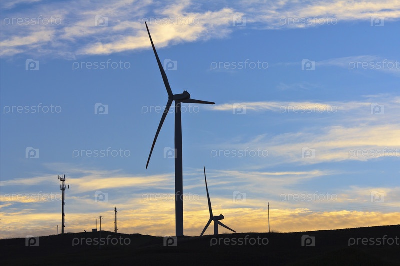 Италия, Сицилия, ветрогенераторы на закате
