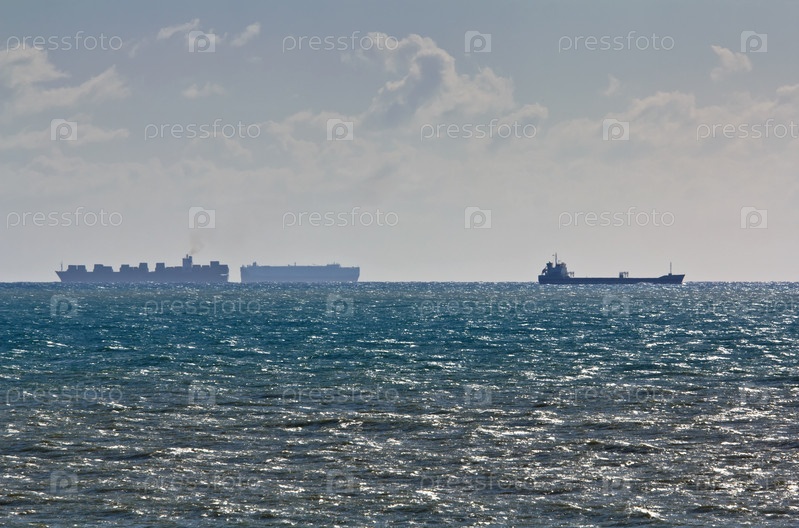 Италия, Сицилия, Средиземное море, грузовые суда и танкер в Сицилийском канале