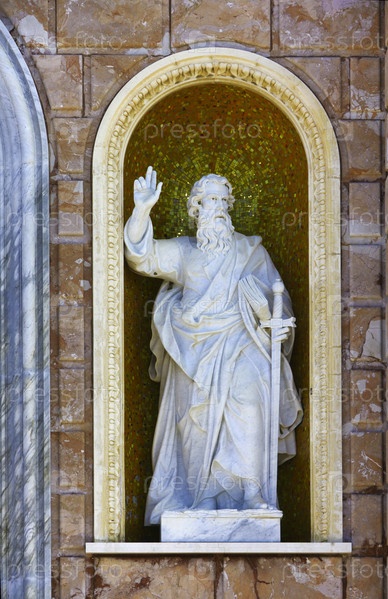 Италия, Сицилия, Тиндари. Мраморная статуя перед святилищем Святой Марии