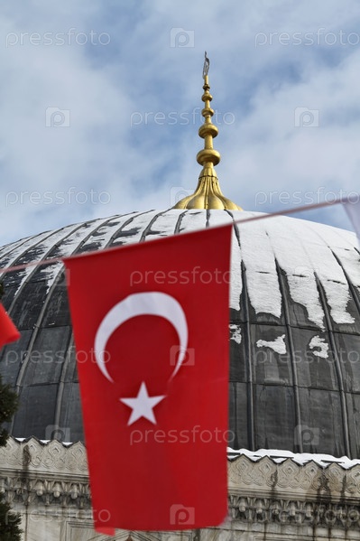 Турция, Стамбул. Турецкие флаги и собор Святой Софии