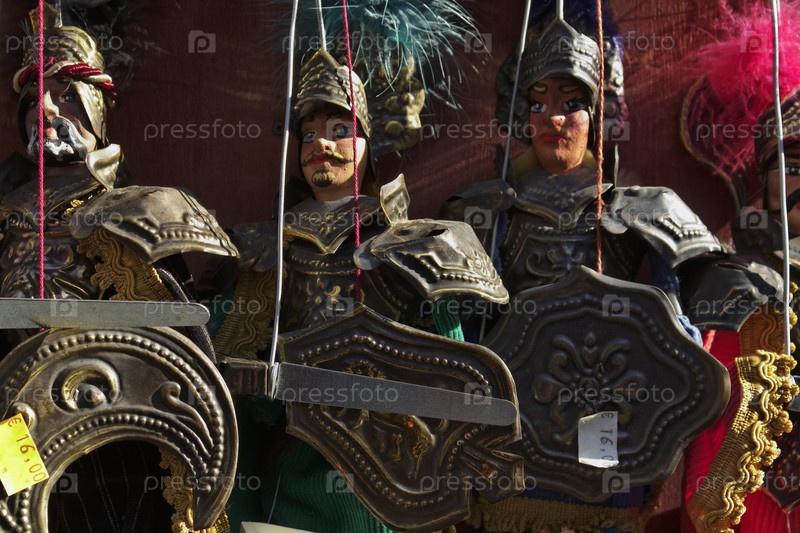 Италия, Сицилия, Таормина. Сицилийские марионетки на продажу