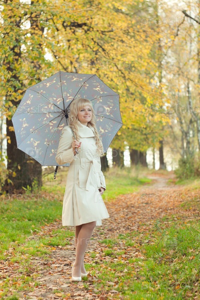 Девушка с зонтом в осеннем парке