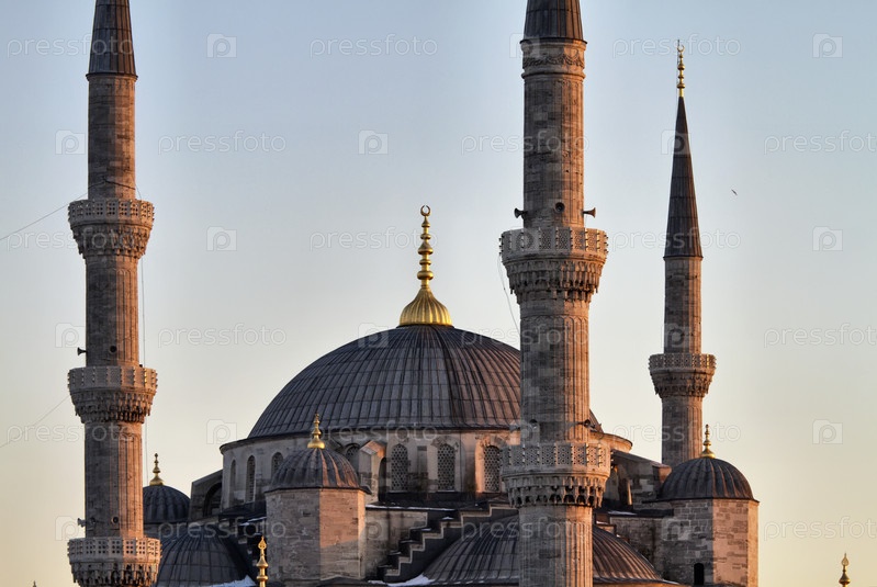 Турция, Стамбул. Императорская мечеть Султанахмет на закате