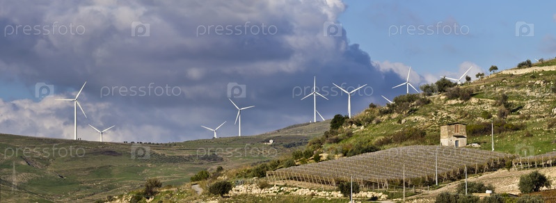 Италия, Сицилия, сельская местность недалеко от Агридженто. Ветряные турбины