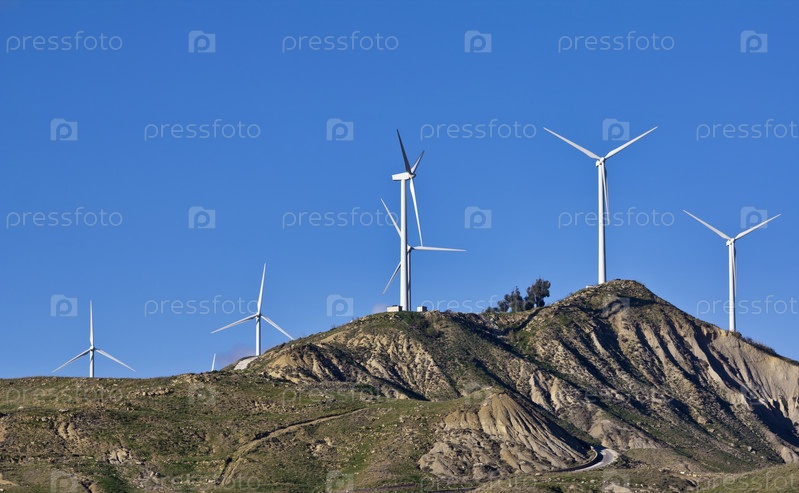 Италия, Сицилия, сельская местность недалеко от Агридженто. Ветряные турбины