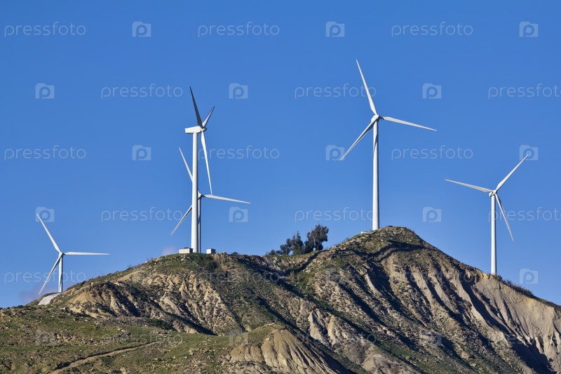 Италия, Сицилия, сельская местность недалеко от Агридженто. Ветряные турбины