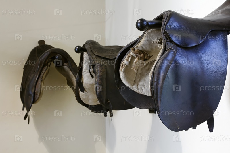 Италия, Сицилия. Старые кожаные седла для верховой езды в загородном доме