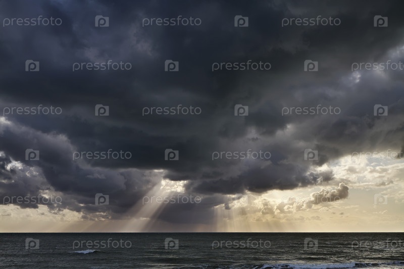 Италия, Сицилия, Средиземное море. Темные облака в небе