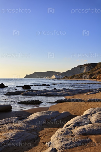 Италия, Сицилия, Реальмонте. Видна пляж на закате