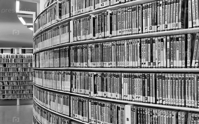 Стеллажи с коллекциями фильмов