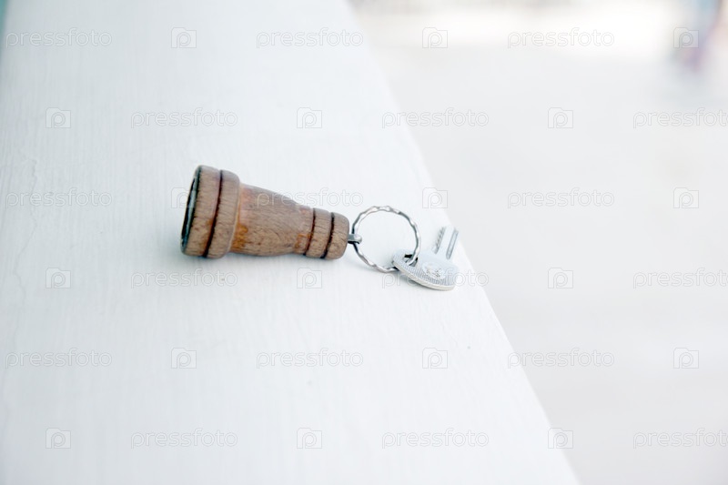 Деревянный брелок и металлический ключ