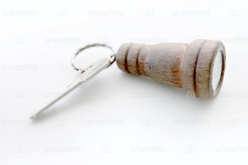 Деревянный брелок и металлический ключ