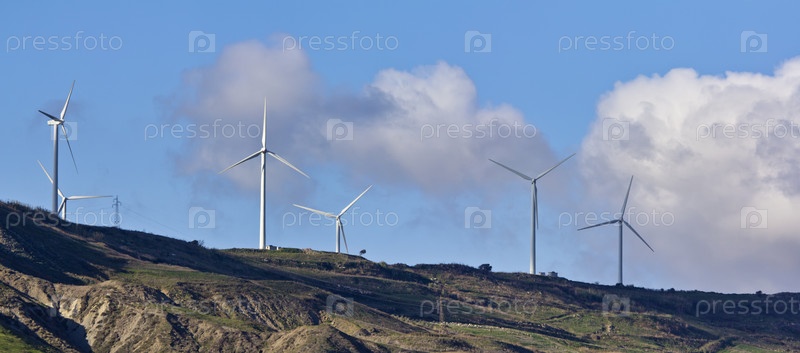 Италия, Сицилия, сельская местность возле Агридженто, ветрогенераторы Eolic