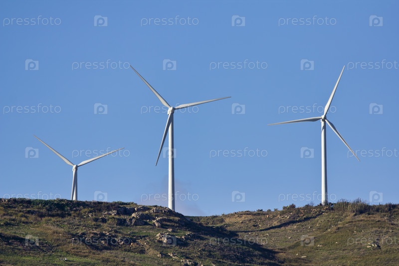 Италия, Сицилия, сельская местность возле Агридженто, ветрогенераторы Eolic