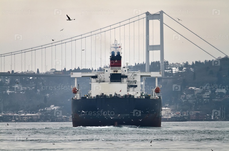 Турция, Стамбул, пролив Босфор, Босфорский мост, грузовой корабль