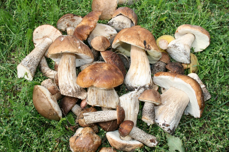 Куча грибов на траве