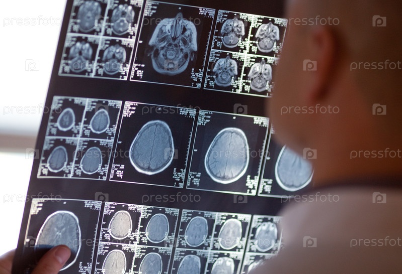 Врач изучает магнитно-резонансную томограмму