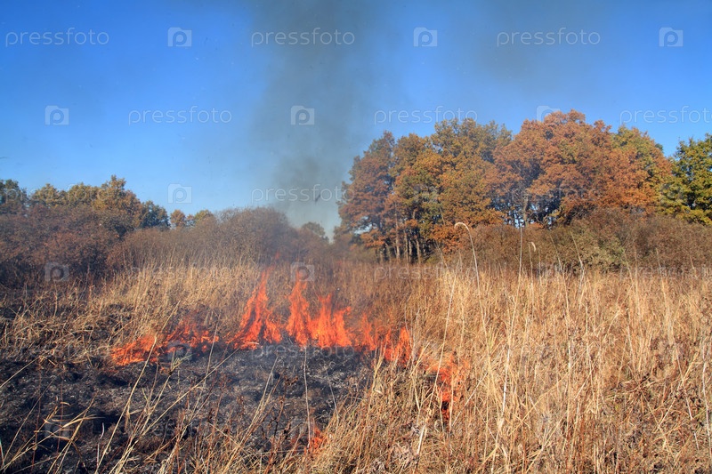 Горящая сухая трава
