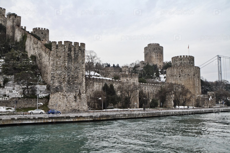 Турция, Стамбул, крепость Румели, видна со стороны пролива Босфор, построена Мехмедом Завоевателем в 1452, чтобы контролировать и защищать канал