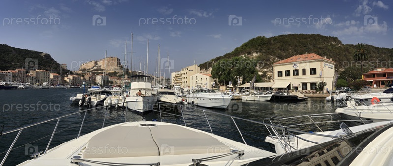 Франция, Корсика, Бонифацио, панорамный вид на порт и город