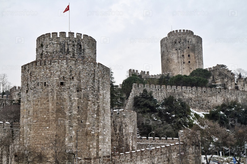 Турция, Стамбул, крепость Румели, видна со стороны пролива Босфор, построена Мехмедом Завоевателем в 1452, чтобы контролировать и защищать канал