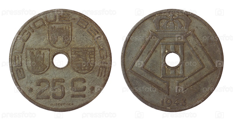 Античный редкие монеты Бельгии на белом фоне