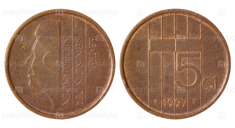 Редкия монета Нидерландов на белом фоне