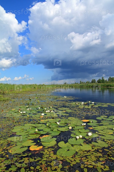Водяные лилии на небольшом озере
