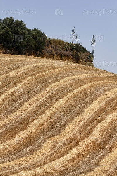 Италия, Сицилия, провинция Катания , сельская местность, сбор сена