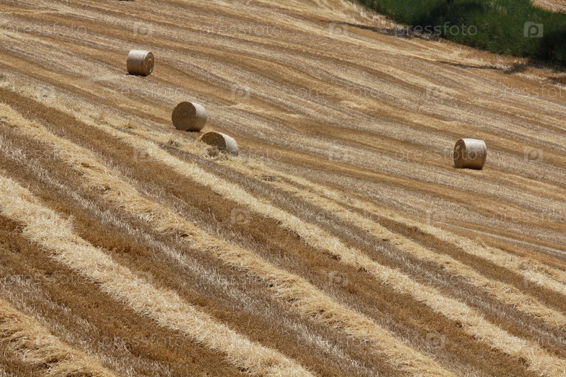 Италия, Сицилия, провинция Катания , сельская местность, сбор сена