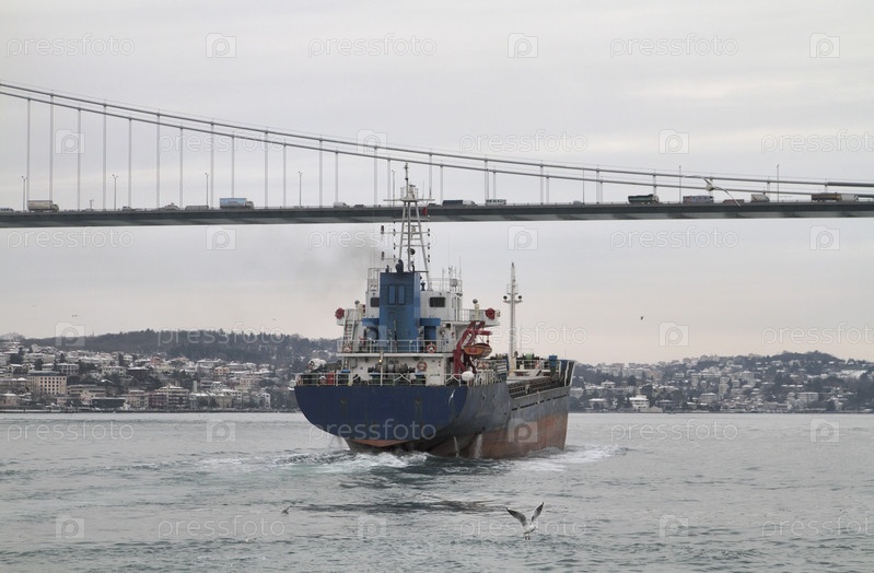 Грузовое судно в проливе Босфор, Турция
