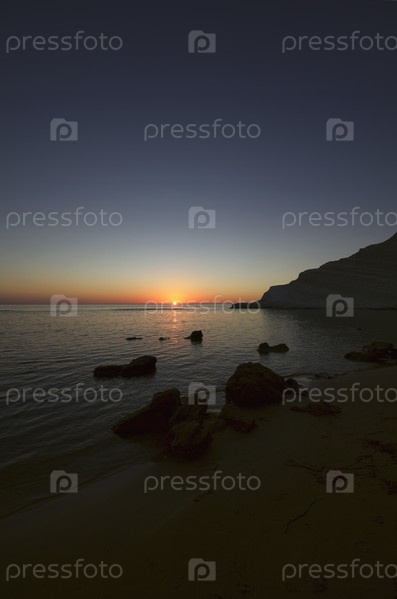 Италия, Сицилия, Реальмонте, вид Турецкой лестницы на закате