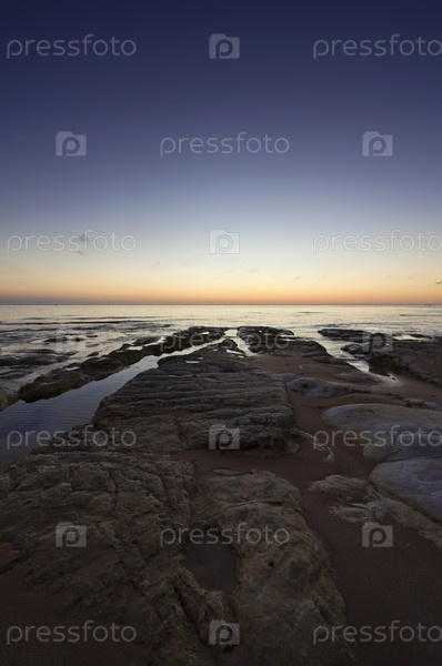Италия, Сицилия, Реальмонте, вид на пляж Турецкой лестницы на закате
