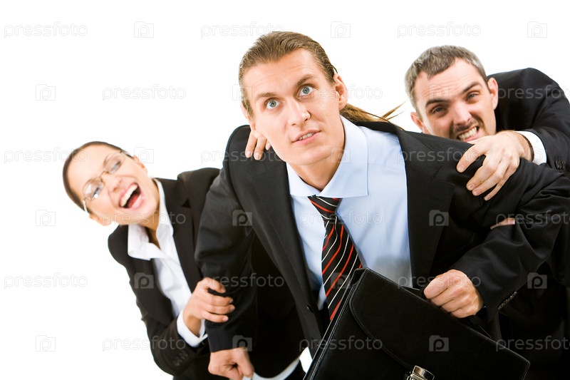 Изображение бизнесмена, пытающегося освободиться от своих коллег