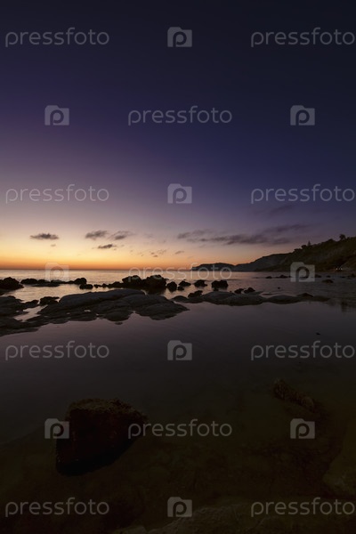 Италия, Сицилия, Реальмонте, вид на пляж Турецкой лестницы на закате