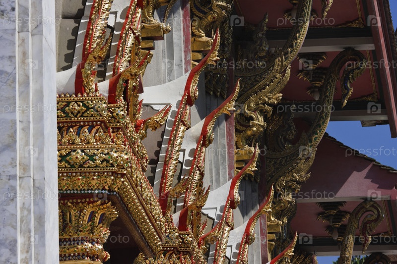 Таиланд, Бангкок, украшения на крыше небольшого храма недалеко от Храма Большого Будды, XIX век