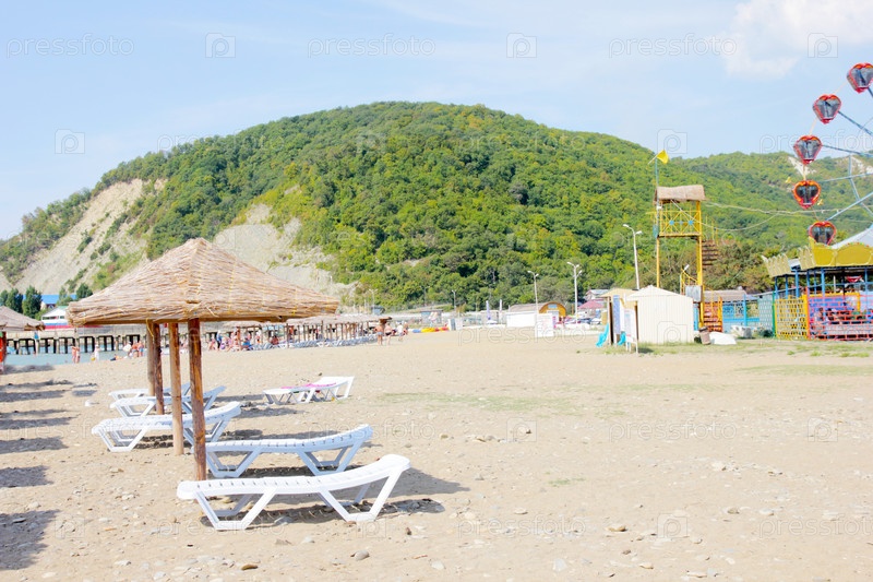Шезлонги и зонты на пляже