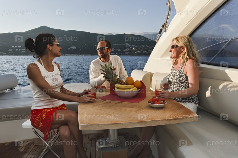 Друзья на палубе роскошной яхты